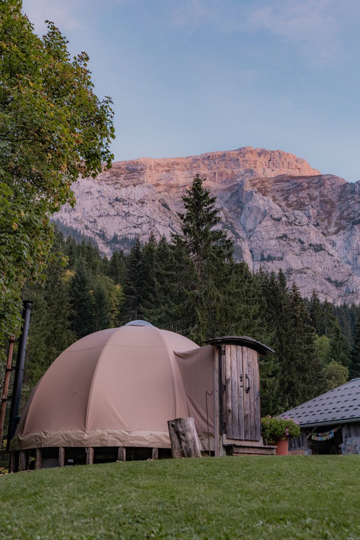 Locations insolites en Haute-Savoie au Mont-Saxonnex, ni camping ou bivouac, ni réellement hôtelier c’est bien une expérience «glamping» en Haute-Savoie. Une belle occasion de partager un moment atypique et décontracté dans une ambiance montagnarde originale.